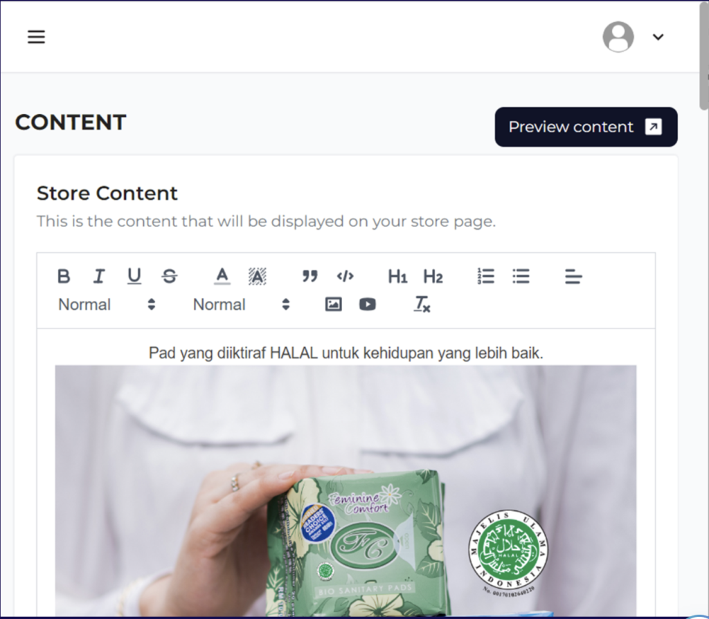 Anda boleh memasukkan pelbagai gambar, video atau pun text font mengikut kesesuaian kedai online anda.